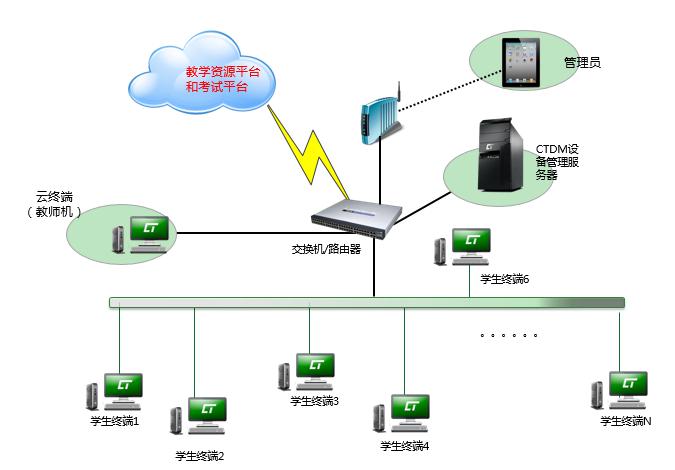 “云教室”解决方案在硬件投入成本、软件许可开销、人员雇佣成本、管理维护费用、后期运营成本等方面均更加有效,能节省大量的投入,省下大笔的费用,克服了众多传统电脑教室的问题和弊端,其维护简便、小尺寸、低功耗、低噪音、寿命长、高性价比、功能齐备的配套教学软件等优势。云计算教室所有的教学资源都存储在“云端”,实际上就是用一个大型资源库取代了每一台电脑有限的存储空间,简化了主机这一功能。只要拥有一个云终端,老师就可随时随地备课、辅导学生,学生则可以随时随地享受到原来在教室才能进行的听课、答疑。
